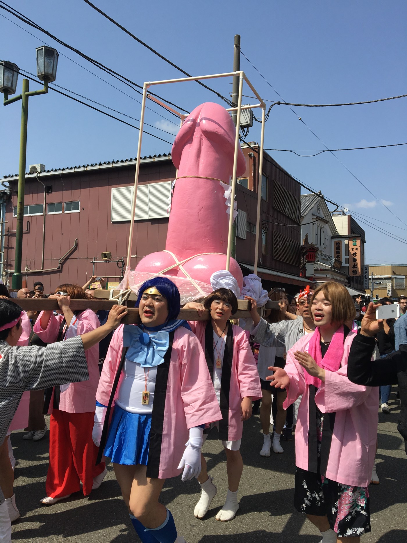 El mikoshi es un objeto característico de todos los rituales sintoístas. Se trata de un recinto en miniatura, con sus respectivos pilares, ventanas y cortinas, el vehículo de los dioses que es acarreado por los habitantes de una ciudad para purificar así las calles. En el Festival Kanamara, sin embargo, existe un segundo y un tercer mikoshi, los cuales cobran protagonismo por sobre el habitual. Uno de ellos es un alargado metal oscuro rodeado de sogas de cáñamo. El otro, un gigantesco pene de madera pintado de color rosa. Un grupo de travestis transportan este último, riendo y cantando y saltando, hasta llegar a una plaza en donde se desarrollan las celebraciones: alcohol, baile, música electrónica. No se trata de una Marcha del Orgullo, ni de una fiesta en nombre de la liberación sexual. El Festival Kanamara es una tradición japonesa en nombre de la fertilidad.