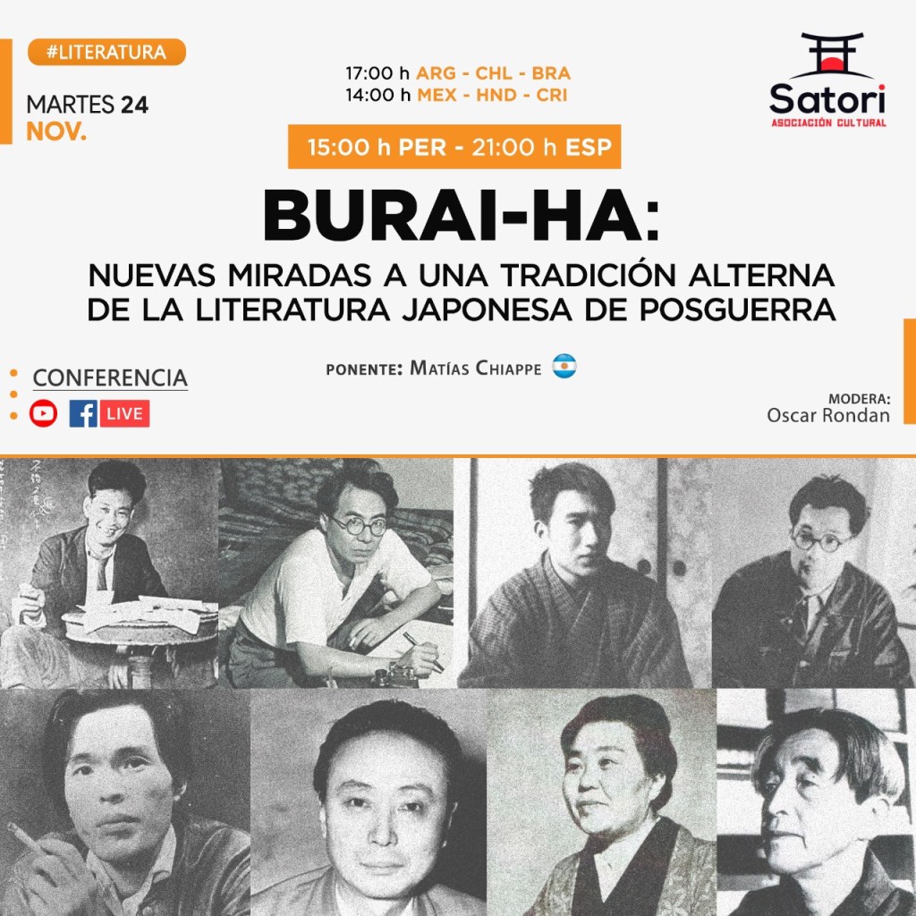 ¡Tomodachis! Mañana por la tarde voy a estar dando esta conferencia sobre el grupo de los «escritores rebeldes» de la literatura japonesa de posguerra llamado a veces burai-ha («los decadentes»). Es online para el megaevento de Satori – Asociación Cultural 悟り. ¡Los espero!