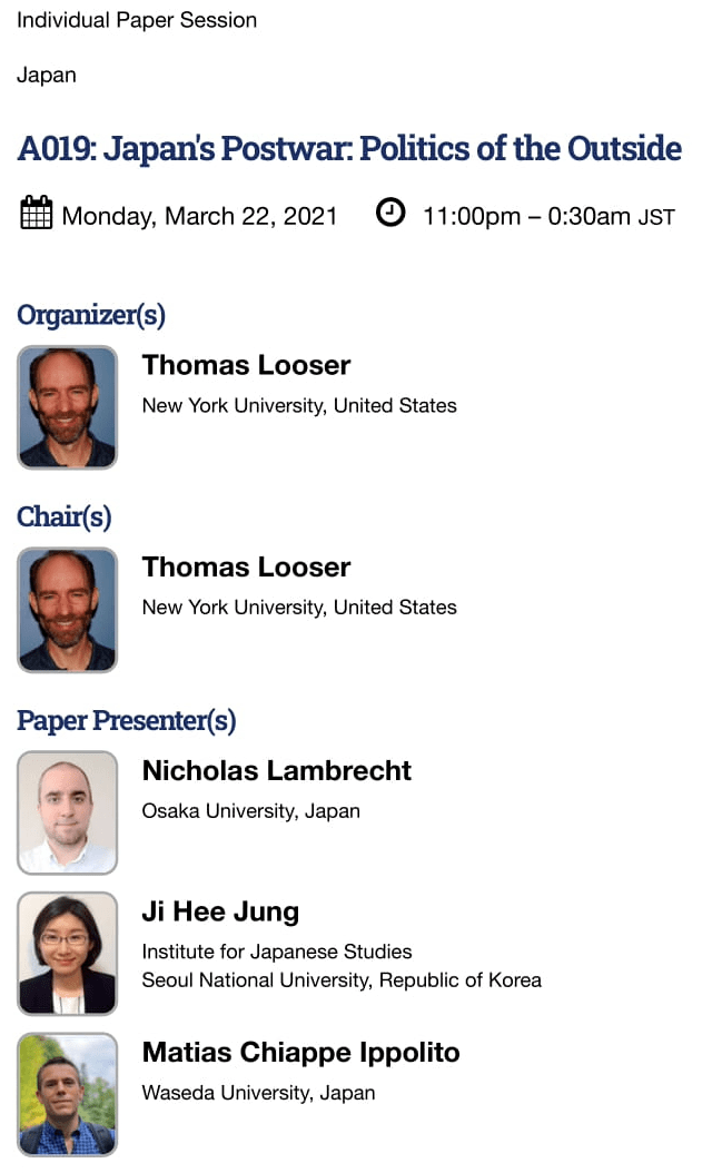 I am giving this conference for the Asian Studies Conference 2021 (tomorrow 10:00 am EDT, 11:00 am GMT, today 11:00 pm JST). It is a great honor to be part of an eavent that gathers the most important Asian scholars in the world and a unique opportunity to present my research about the connections between Japanese and Latin American literatures. Hope you can register and drop by. And also check the impressive schedule. Here is the link for the event platform, which requieres registration: https://www.eventscribe.net//2021/AASVirtual/index.asp
