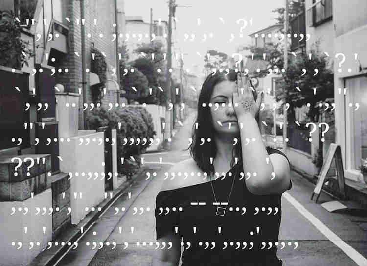 Zoria’s visual poem from ToPoJo Volume 6, from her Distilled Emotion: Neuromancer’s Tokyo series made with the punctuation from William Gibson’s cult cyberpunk classic