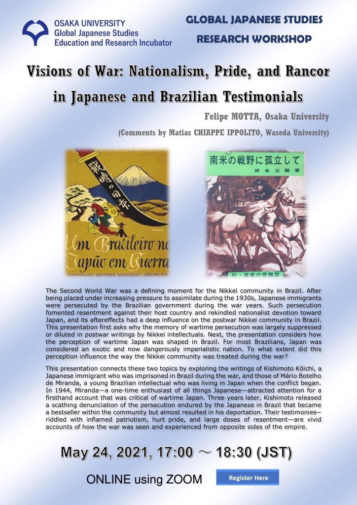 To everyone interested in Japanese migrant communities in South America, I invite you all to this talk by Professor Felipe Motta of Osaka University to be held this afternoon in Japan time. I can send you the Zoom link via pm.