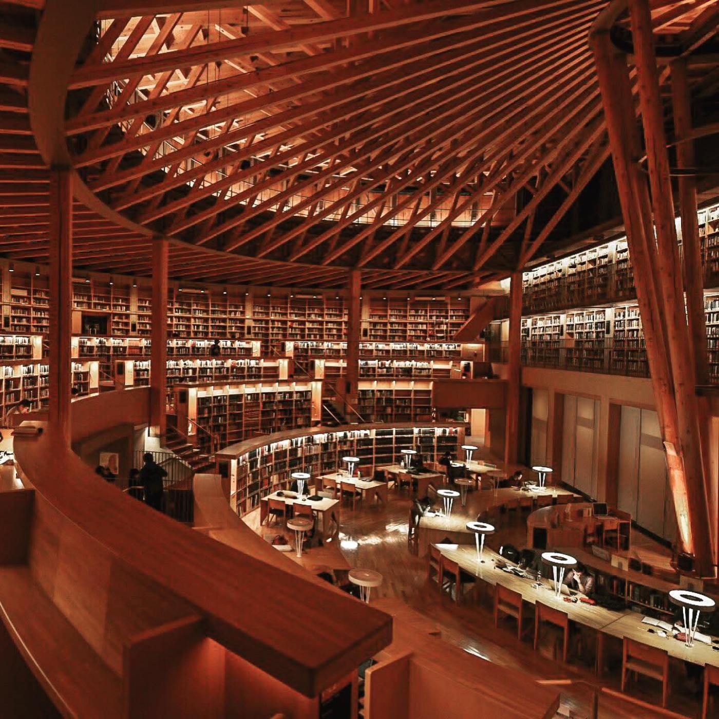 Designed by architect Mitsuru Senda, the Nakajima Library in Akita City is literally a «Book Colosseum» in which students are constantly facing a book. All of the wood used for the construction is Akita Cedar Tree (Akitasugi), cultivated only in local woodlands. Aside from its unforgettable architecture, the library holds 75,000 books, 3,000 audiovisual resources and is open to all public 24/7 all-year round. It is a true bastion to the devotion that the Japanese feel for books. #librarynomad #bookworm #architecture #woodandbooks #dreamscape