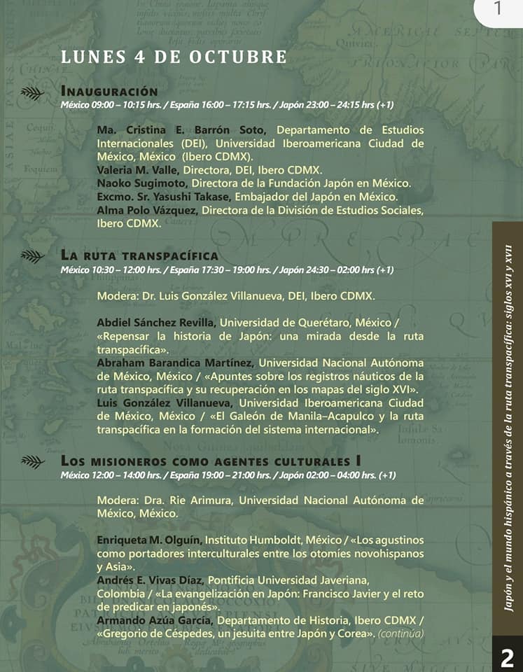 Voy a exponer la siguiente ponencia en el Simposio Internacional «Japón y el mundo hispánico a través de la ruta transpacífica: siglos XVI y XVII», que se transmitirá por el Facebook del Departamento de Estudios Internacionales de la Universidad Iberoamericana de CDMX (este link) el 4, 5 y 6 de octubre de 2021. Mi ponencia en particular será el miércoles 6 de 4 a 6 am en México, de 11 am a 1 pm en España y de 6 a 8 pm en Japón. Les dejo el resumen y ojalá puedan participar.