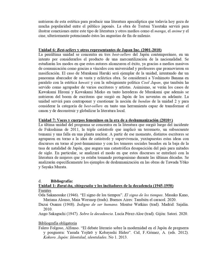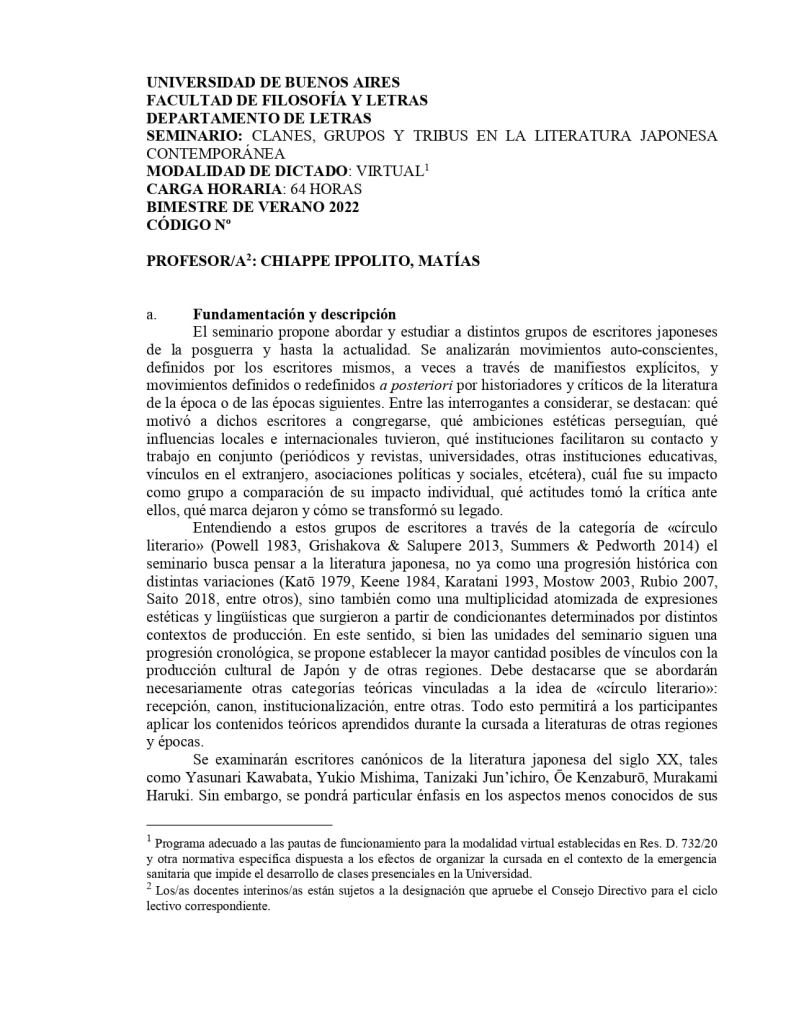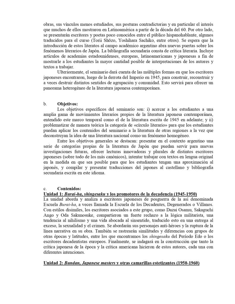 Empecé a dedicarme a la literatura japonesa luego de cursar un seminario que dio el Dr. Alberto Silva en la UBA. Hoy, más de una década después, voy a ser yo el docente a cargo de enseñar literatura japonesa en esa misma universidad. He aquí el seminario de grado que voy a dictar online durante el bimestre de verano de 2022. Vamos a profundizar en la literatura de posguerra en adelante, a leer textos en japonés y a contar con invitados de lujo. Aquí les dejo el programa. Espero se sumen, lo difundan y, sobre todo, que sirva para seguir expandiendo los horizontes de los estudiantes argentinos. Más información cómo inscribirse la semana que viene, en el link de abajo. También les dejo el programa.