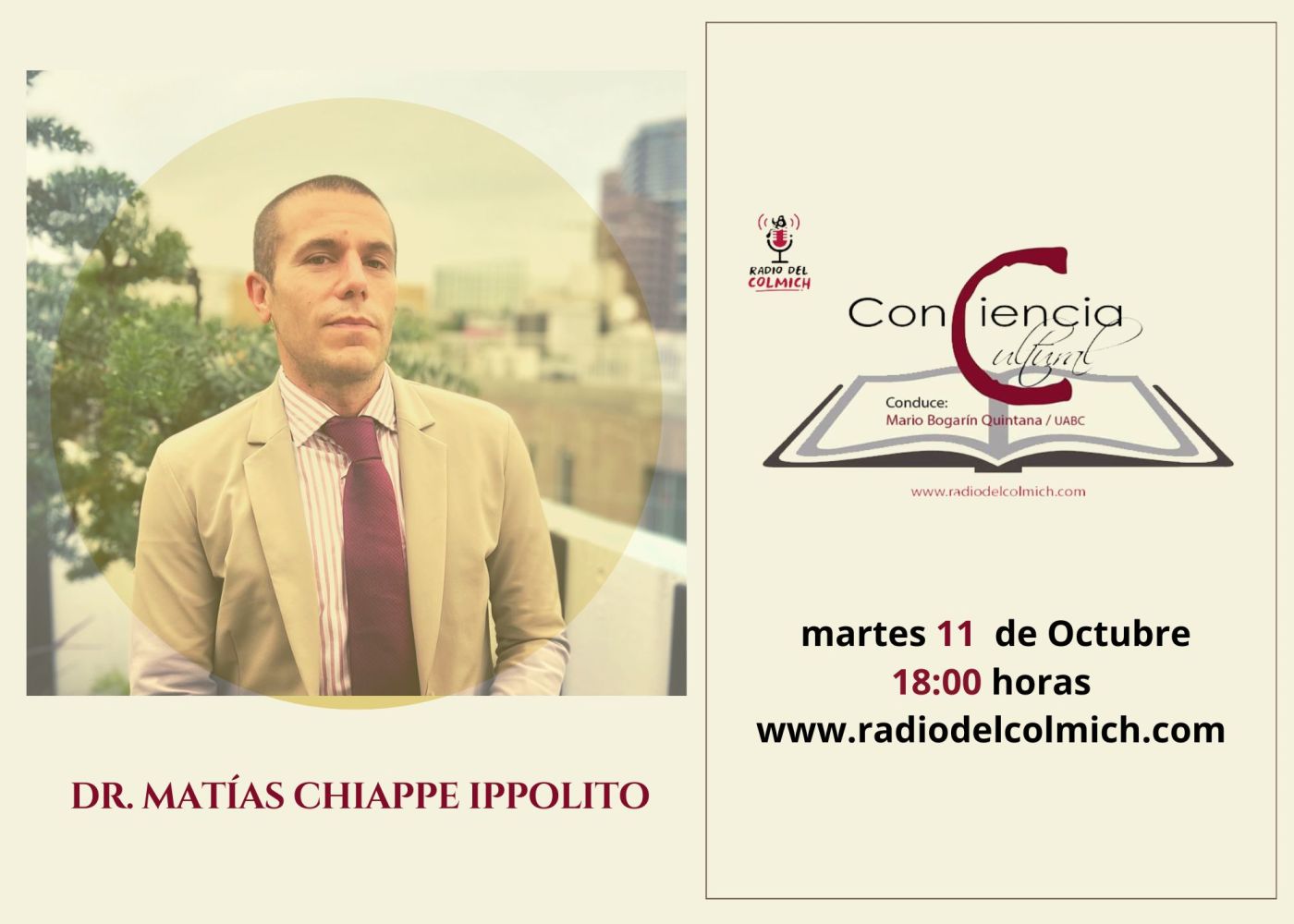 Entrevista @ Colmich Entrevista con el especialista en relaciones entre la cultura japonesa y las literaturas latinoamericanas, Dr. Matías Chiappe Ippolito. Martes 11 de octubre, a las 18:00 horas www.radiodelcolmich.com Conduce: Dr. Mario Bogarín Quintana / UABC Comparte esto: Haz clic para compartir en Facebook (Se abre en una ventana nueva) Facebook Haz clic para enviar un enlace por correo electrónico a un amigo (Se abre en una ventana nueva) Correo electrónico Haz clic para compartir en Telegram (Se abre en una ventana nueva) Telegram Haz clic para compartir en WhatsApp (Se abre en una ventana nueva) WhatsApp Haz clic para compartir en X (Se abre en una ventana nueva) X Me gusta Cargando... Relacionado Deja un comentario Cancelar la respuesta