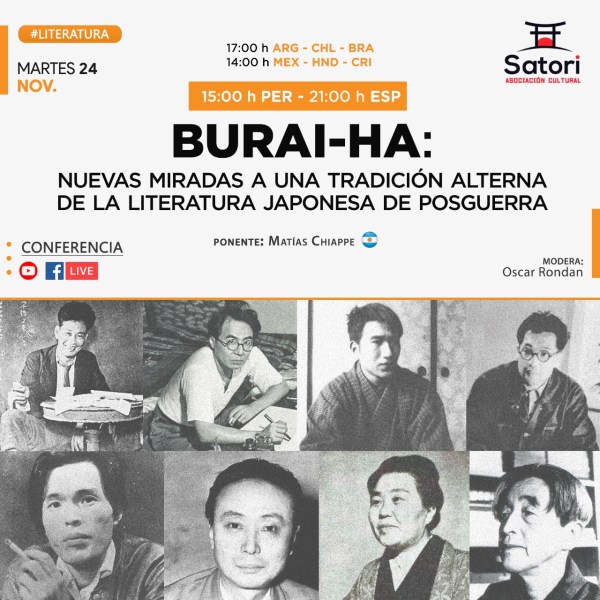 ¡Tomodachis! Mañana por la tarde voy a estar dando esta conferencia sobre el grupo de los "escritores rebeldes" de la literatura japonesa de posguerra llamado a veces burai-ha ("los decadentes"). Es online para el megaevento de Satori - Asociación Cultural 悟り. ¡Los espero! Link acá La conferencia aborda y analiza a los escritores japoneses de... Leer más →